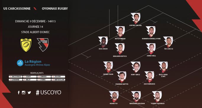 A l’occasion de la 14ème journée de ProD2, Oyonnax se déplace chez l’US Carcassonne, dimanche 9 décembre à 14h15. Pour comprendre les enjeux de la rencontre voici quelques chiffres.