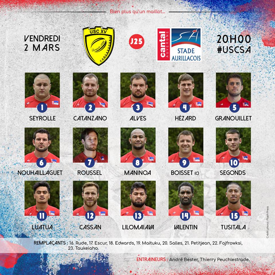 Yes We Can a écrit : 01 mars 2018, 21:57 Il me manque Castant dans cette compo...contre Aurillac, il faut foutre des types qui ont la grinta. Demain c’est un match à 8 points.