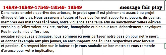 Il serait peut-être souhaitable de reprendre un message similaire en rajoutant le respect du corps arbitral. Le texte pourrait être diffusé sur les réseaux sociaux et être lu par le speaker du stade avant chaque match.