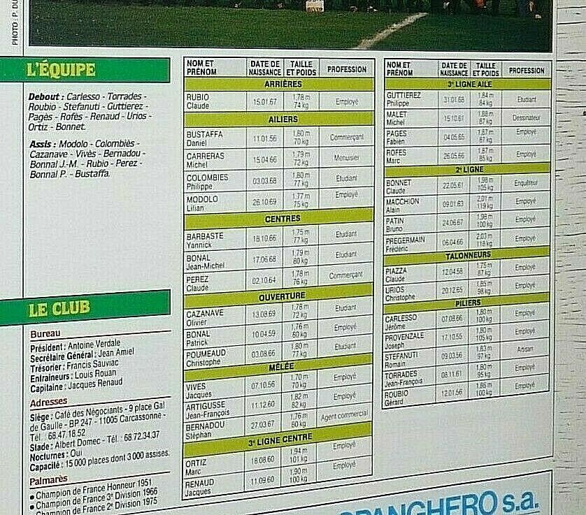 ca doit pas etre loin de 1985 ???Daniel a écrit : 03 févr. 2020, 17:41j'ai retrouvé cette compo de l'USC avec Christophe Urios au talon quelqu'un sait t'il de quelle année ça date ?