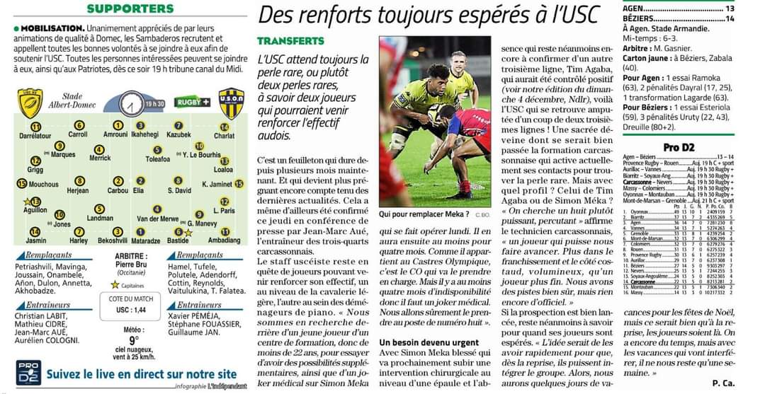 Re: J14 - US Carcassonnaise - USON Nevers Rugby