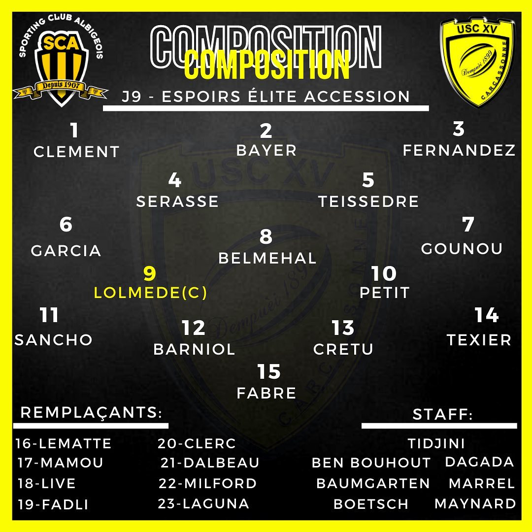 ci dessous la compo des espoirs qui se rendent à Albi ce samedi - Match à 15h00